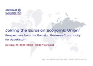 On October 13, the American Chamber of Commerce in Uzbekistan hosted a virtual regional round table discussion “Joining the Eurasian Economic Union: Perspectives from the Eurasian Business Community for Uzbekistan”. Tatyana Bystrushkina, Executive Director of AmCham Uzbekistan, moderated the event with leading economists from four Eurasian Economic Union (EAEU) member countries (Armenia, Kazakhstan, Kyrgyzstan, and Russia) and Uzbekistan. Panelists: Kassymkhan Kapparov Read More...