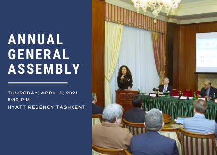 General Assembly on April 8, 2021 Annual General Assembly on April 8, 2021 was the first offline event of the Chamber within the last year. The aim of the event was to report on the activities in 2020 and elect AmCham Board of Directors for 2021. Despite COVID-19 situation in Uzbekistan, the Chamber organized over 60 online events with participation of leading government ministries and agencies. The speakers included Senator Safaev, Dilshod Sultanov, Deputy Minister of Finance, Read More...