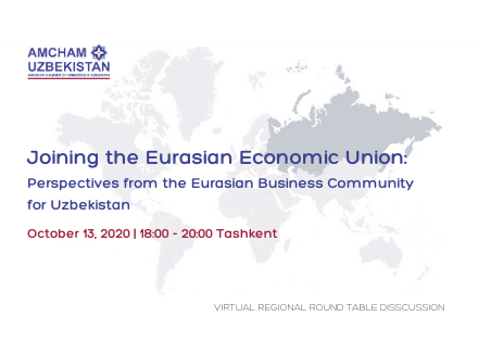 On October 13, the American Chamber of Commerce in Uzbekistan hosted a virtual regional round table discussion “Joining the Eurasian Economic Union: Perspectives from the Eurasian Business Community for Uzbekistan”. Tatyana Bystrushkina, Executive Director of AmCham Uzbekistan, moderated the event with leading economists from four Eurasian Economic Union (EAEU) member countries (Armenia, Kazakhstan, Kyrgyzstan, and Russia) and Uzbekistan.